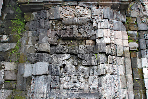 Decorative wall with carvings in the Sewu Temple - the second largest Buddhist temple complex in Java; built in 8th century;