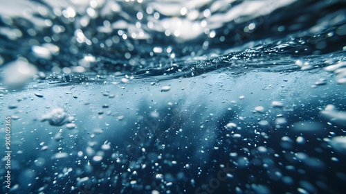 Deep Blue Underwater Scene with Bubbles and Light Rays