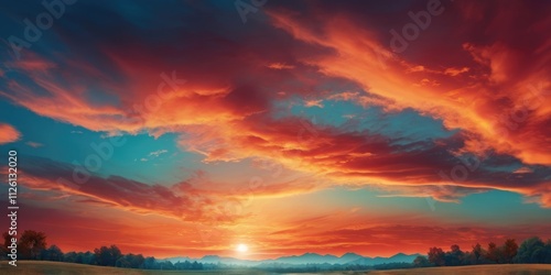Deep Cyan and orange Fantasy vibrant panoramic sunset sky
