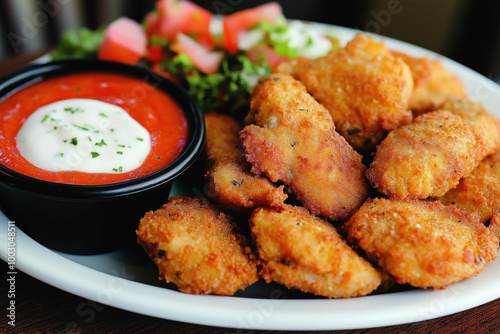 deep, fried, oyster, food, chicken, meal, meat, plate, dinner, dish, shrimp, cookery, sauce, snack, delicious, pork meat, lunch, closeup, fish, roasted, epicure, wing, grilled, tasty, eatery, white