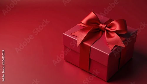 Deep red gift box, crimson ribbon shaped as a cupid's bow , bow, gift, macro