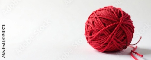 Deep red yarn ball, smooth texture, white backdrop, material, ball