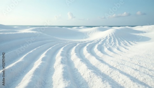 Deep wave lines carved in brilliant white sand; granular detail visible , summer texture, shore