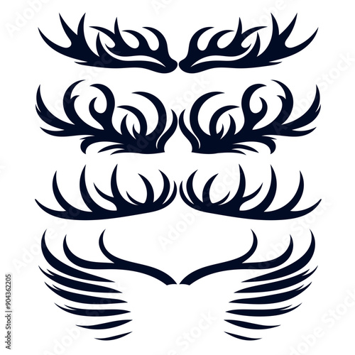 horn, cervid, antler, vector, hunter, hunting, wildlife, nature, animal, forest, design, silhouette, illustration, clip art, set, graphic, emblem, logotype, badge, trophy, rustic, vintage, adventure, wild, fauna, sport, game, decor, traditional, artistic, template, outline, natural, rural, timberland, prey, male, majestic, stylish, tribal, symbolic, elegant, decorative, masculine, heritage, powerful, fierce