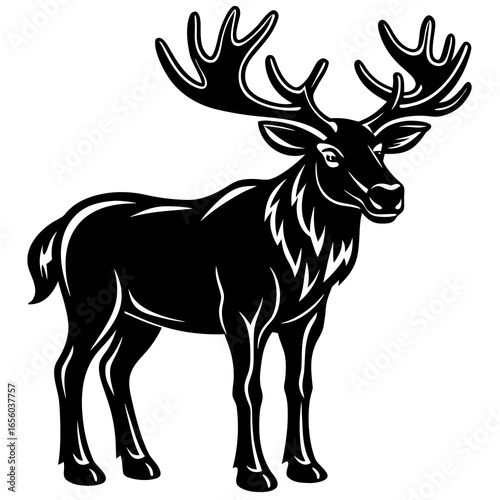 cervid, animal, reindeer, mammal, vector, isolated, illustration, silhouette, wild, nature, wildlife, christmas, cartoon, white, antler, horn, stag, antelope, brown, elk, moose, cute, antler, black, horn