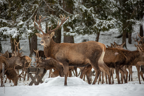 cervid, stag, wildlife, mammalia, winter, wood, bavaria, stag, wildlife, fur, antler, animal, wild animal, mammal, snow, cold, nature, season, white, tree