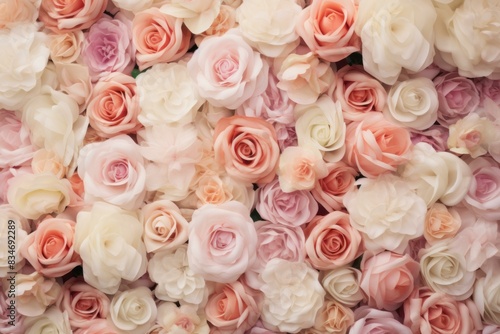 Delicate and romantic soft pastel roses background with gentle and feminine floral bouquet for wedding. Love. Celebration. And elegant decoration
