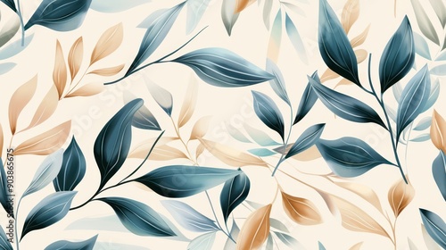 Delicate blue leaves on a white background, creating a soft and elegant botanical pattern, isolated on white. Seamless pattern.