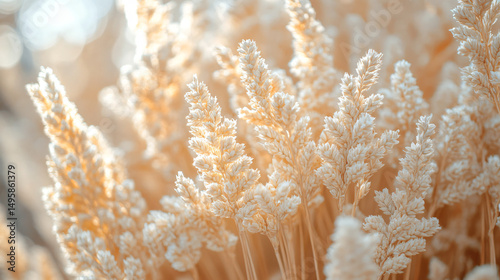Delicate Close-Up of Soft Pale Grass Blades in Gentle Natural Light