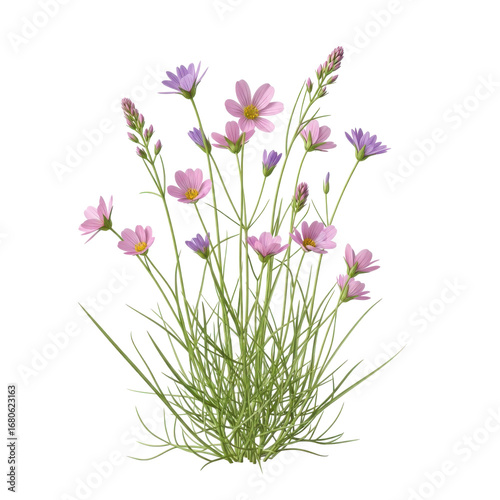 Delicate cluster of pale pink wildflowers with slender green stems isolated on transparent background