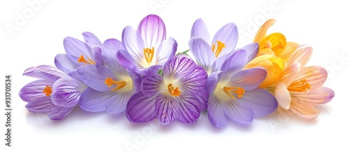 delicate crocuses set against a white background. with copy space image. Place for adding text or design