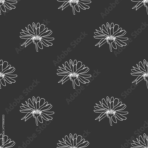 Delicate daisy pattern, beautifully illustrated on a dark background. A simple, elegant design of daisies