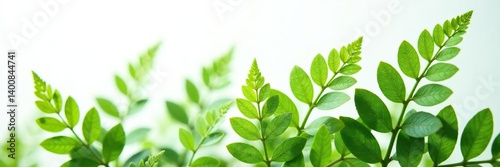 Delicate ferns unfurl on a crisp white canvas, nature, greenery