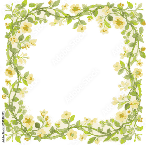 Delicate floral border with pale yellow blossoms and green leaves pale yellow flowers botanical illustration