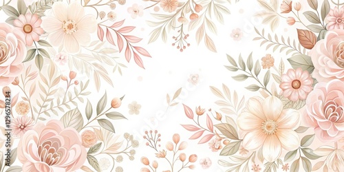 Delicate floral pattern with soft pink and peach hues on a white background, featuring intricate details and gentle curves , soft colors, organic shapes