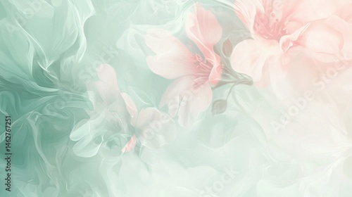 Delicate flowers in soft pastels blend into a gentle, swirling background, creating a calm and peaceful ambiance suitable for relaxation or inspiration