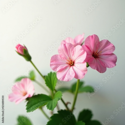 Delicate geranium flowers in bloom on a white background, white, nature