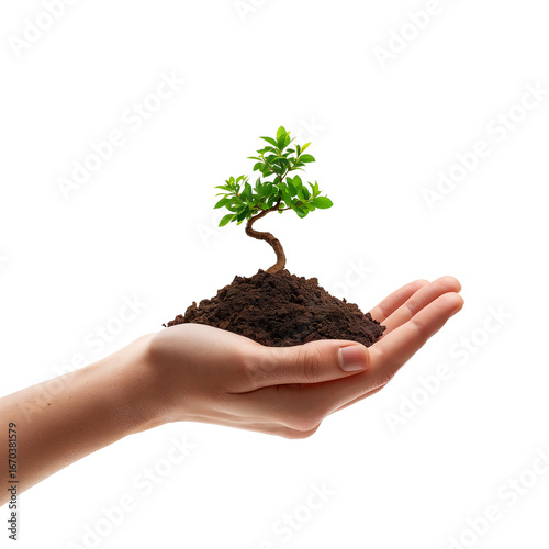 Delicate hope seedling in hand, representing growth, care and environmental responsibility