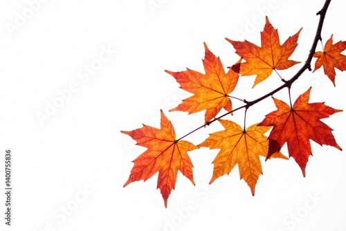 delicate maple leaves in autumnal colors on a branch isolated on white, nature, flowers