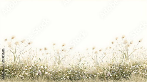 flower, field, grass, meadow, nature, floral, plant, green, white, light, pastel, colours, soft, gentle, peaceful, tranquil, background, border, decorative, design, illustration, art, painting, botanical, spring, summer, landscape, still life, texture, detail, artistic, subtile, abstract, airy, delicate, minimalist, whimsical, vintage, wallpaper, poster, cover, pattern, accent