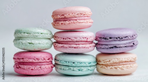 Delicate pastel-colored macarons stacked in a pyramid.