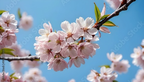 Delicate Pink Cherry Blossoms Against a Blue Sky