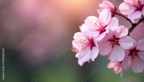 Delicate pink cherry blossoms, full bloom, soft petals , tree, floral