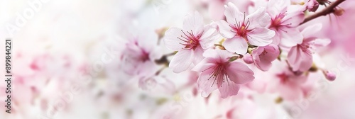 Delicate pink cherry blossoms in full bloom against a soft blurred backdrop and isolated on white. Beautiful floral design element for creative projects.