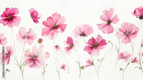 Delicate Pink Cosmos Watercolor Painting. A beautiful floral artwork with soft pink cosmos flowers.