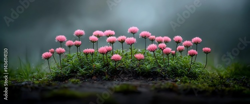 Delicate Pink Flowers in Misty Setting