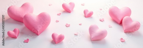 Delicate pink hearts scattered on pristine white , illustration, stationary, texture