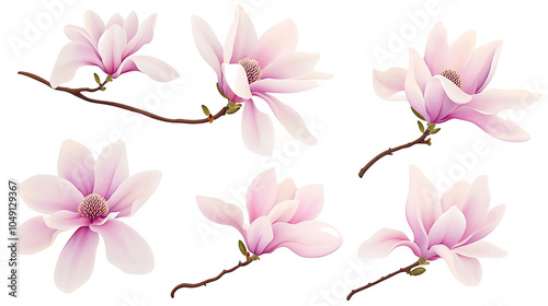 Delicate Pink Magnolia Flowers Set Against a Transparent Background Generative AI