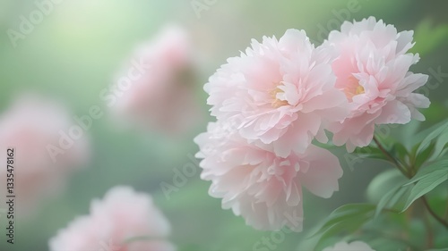 Delicate Pink Peonies in Soft Focus, Springtime Bloom