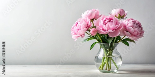 delicate pink peony flower arrangement in a modern glass vase with clean lines and minimal decor , peony flowers, flowers in a vase