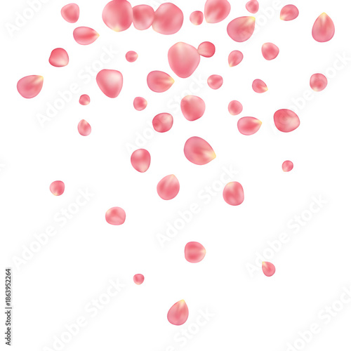 Delicate Pink Rose Petals Falling and Floating in the Air, Romantic Floral Background Isolated on White