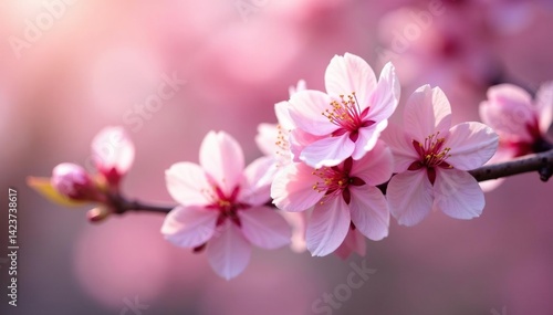 Delicate pink sakura blossoms, soft petals, branch details, elegance, background
