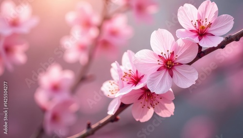Delicate pink sakura blossoms, soft petals, gentle branch patterns , beautiful, springtime, flower pattern