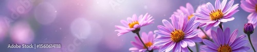 Delicate purple asters in clusters on white petals, nature, blossoms