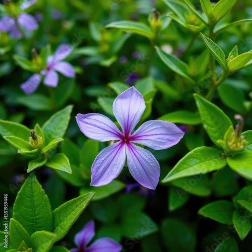 Delicate purple bloom amidst lush green foliage, foliage, blossom, petals
