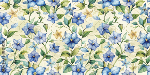 Delicate watercolor floral pattern featuring blue and yellow blooms.