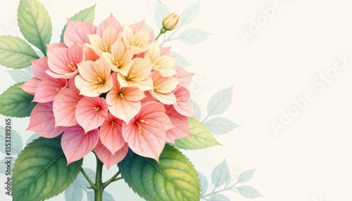 botanical, garden, hydrangea, watercolor, delicate, flower, peach, nature, floral