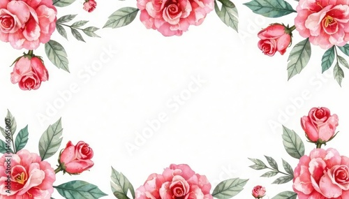 Delicate watercolor roses & leaves, repeating pattern, summer, pink, botanical