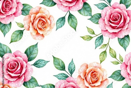 Delicate watercolor roses & leaves, repeating seamlessly , repeat, spring