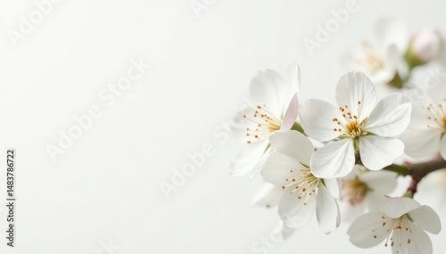 Delicate white blossoms against pure white backdrop, isolated, white background, image