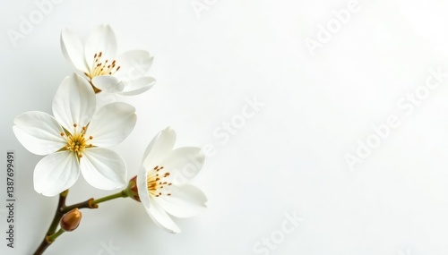 Delicate white flower blossoms against pure white background, flora, wallpaper, minimal