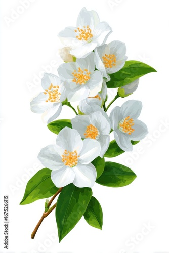 Delicate white jasmine flowers with vibrant green leaves on a clean white background a symbol of purity and fragrance