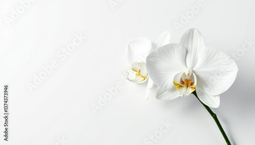 Delicate white orchid blossom against pure white backdrop, pure, beauty, nature