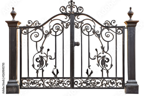 wrought, iron, gate, garden, entrance, floral, design, architecture, ornate, craftsmanship, decorative, classic, style, ironwork, security, home, landscaping, decor, property, driveway, residential, charming, entranceway, detail, pattern, vintage, metalwork, structure, shadow, light, gate, pillar, element, symmetry, luxury, finish, curve, artistry, timeless, isolated, transparent, background