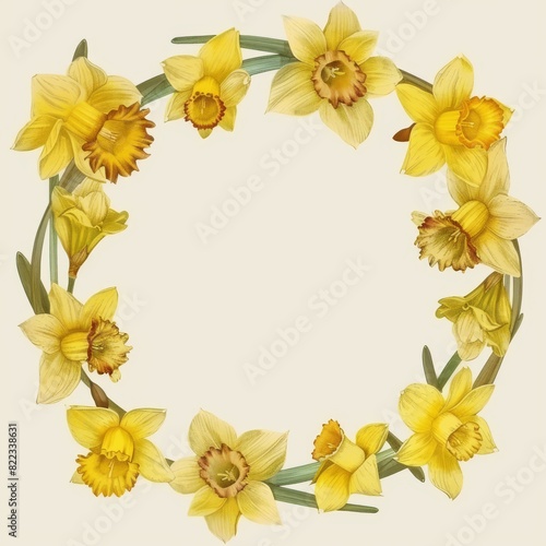 daffodil, chaplet, yellow, green, foliage, illustration, spring, circular, design, flower, decor, delicate, elegant, fresh, botanical, floral, detailed, nature, realistic, artistic, beauty, garden, flower petals, decorative, charming, intricate, springtime, bright, natural, artwork, seasonal, blooming, pastel, graceful, lush