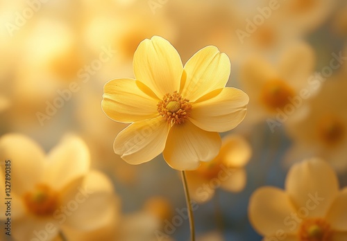 Delicate Yellow Flower with Soft Petals and Gentle Background, Capturing the Beauty of Nature in Warm Tones Under Natural Light